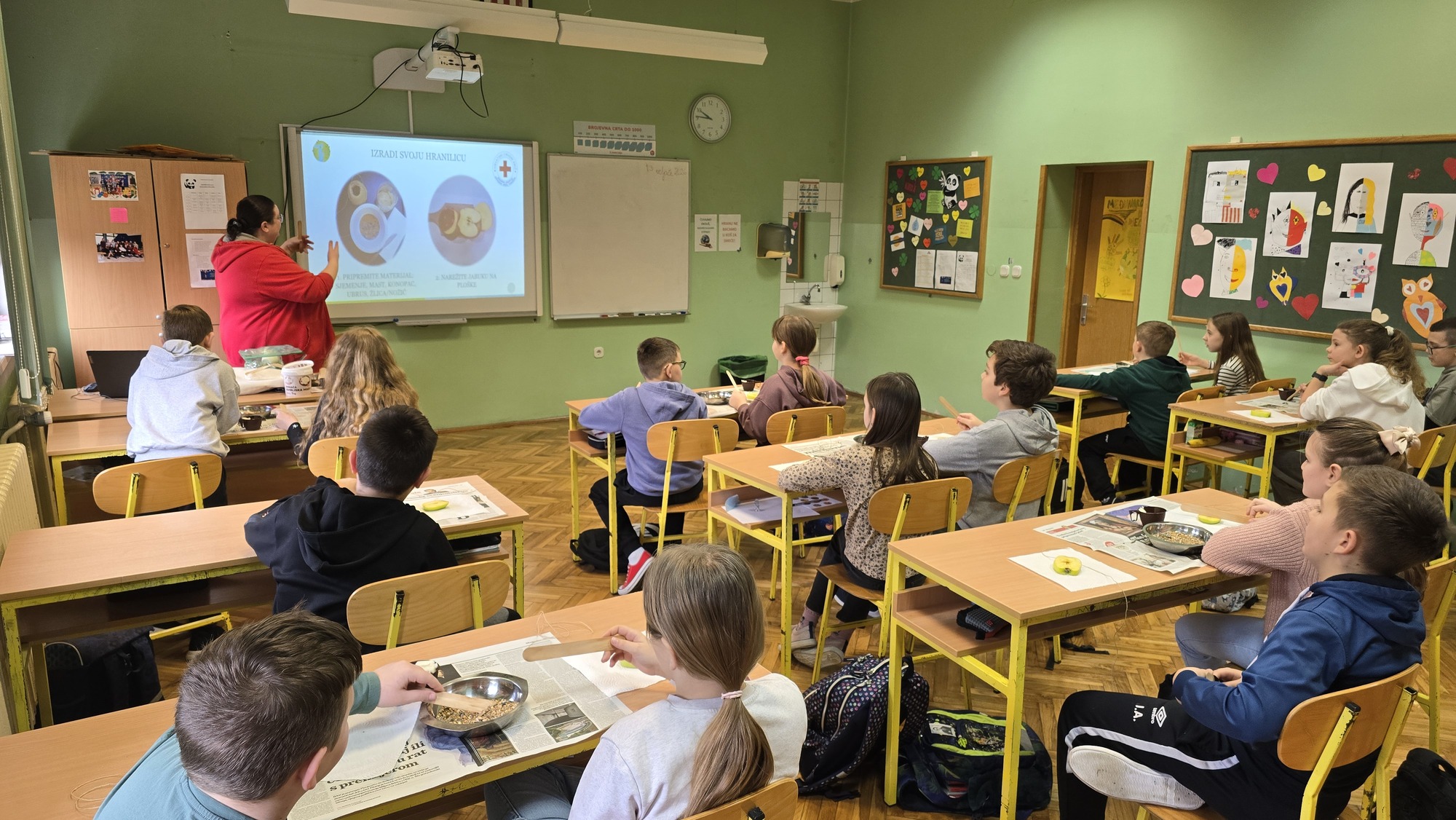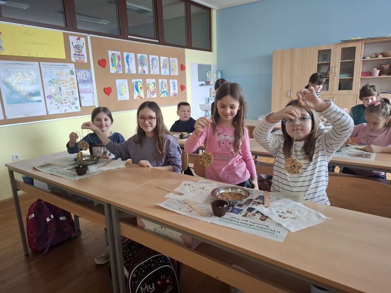 Za učenike 3. i 4. razreda održali smo radionicu „Pomažem prirodi“, usmjerenu na razvoj svijesti o važnosti brige za okoliš i životinje. Učenici su učili kako mogu pomoći životinjama, osobito pticama tijekom zimskih mjeseci, koja je hrana prikladna za njih te na koje načine mogu izraditi jednostavne hranilice. Kroz razgovor i praktične primjere poticali smo ih na odgovorno i aktivno djelovanje u svojoj zajednici.